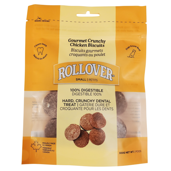 Rollover's Small Gourmet Biscuits are made directly from their dog food, sliced and baked to be a nutritious treat. As with Rollover dog foods, they are nutritionally balanced with meat as the first ingredient and are completely natural.
